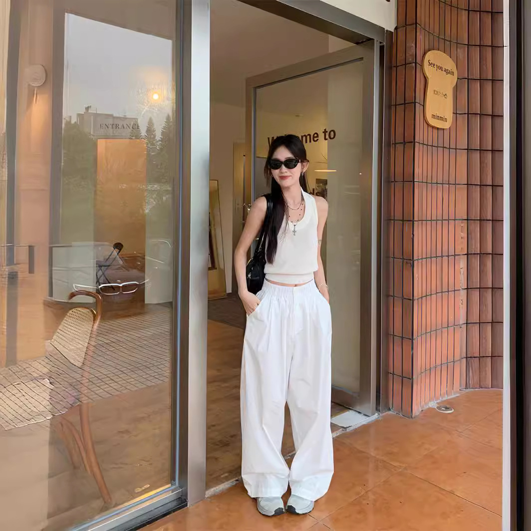 Celana Lebar Kaki Terjatuh Model Baru Celana Panjang Kasual Wanita Celana Panjang Pinggang Tinggi Berlian Panas Industri Berat Longgar Trendi Modis