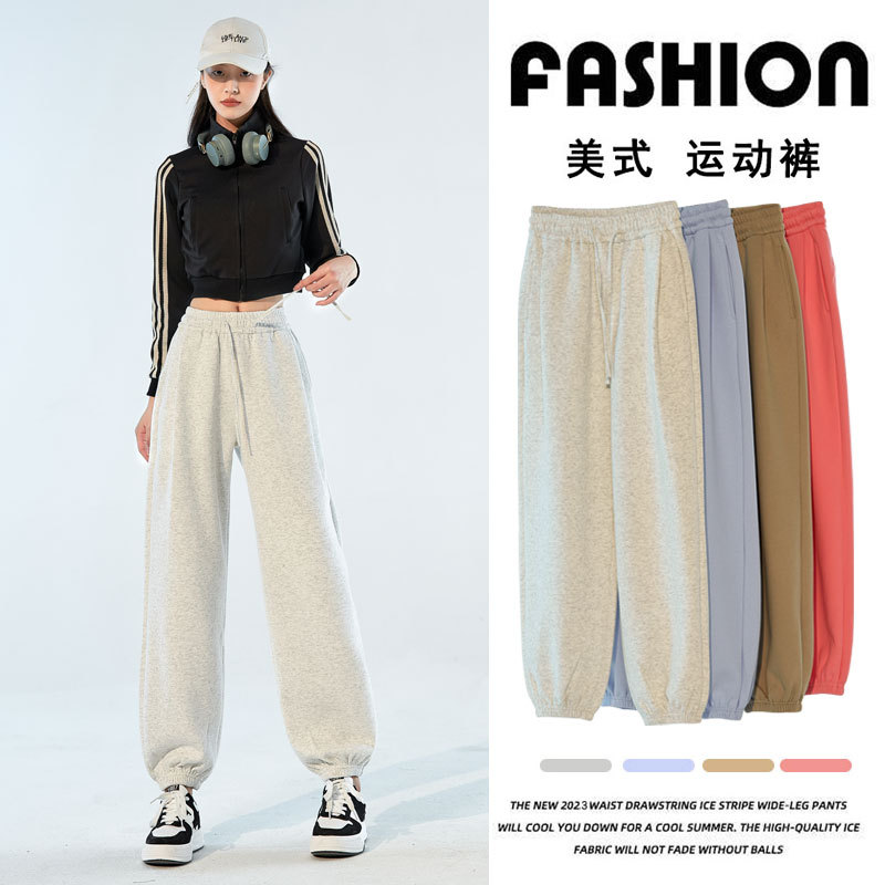 Celana olahraga wanita gaya Amerika, model baru musim semi dan gugur 2025, model jogger longgar, celana kasual ukuran besar, desain pinggang tinggi.