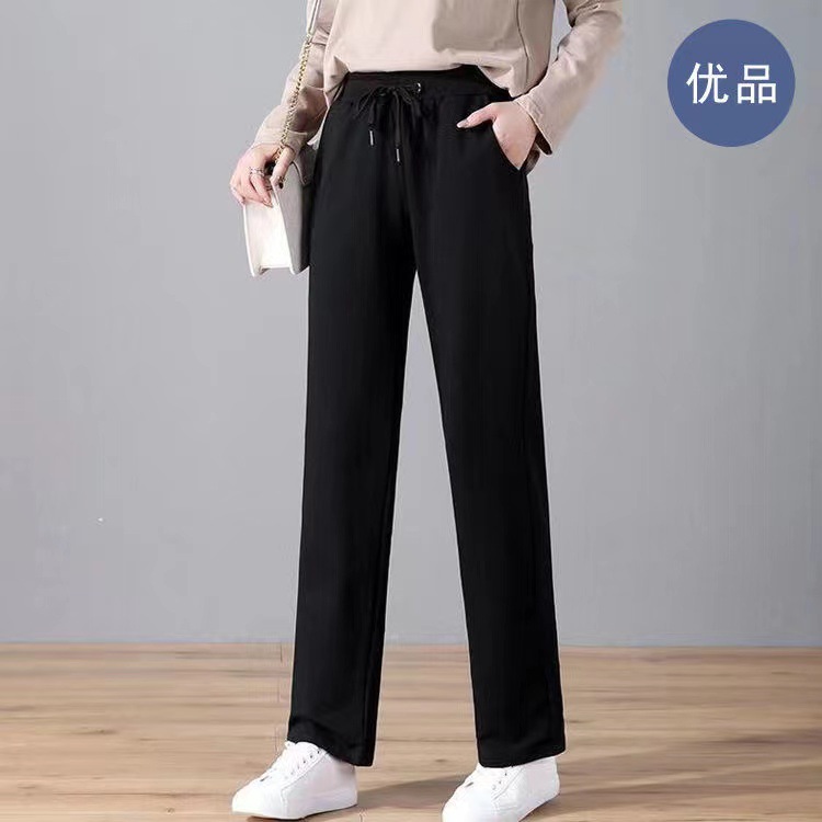 Celana Panjang Kasual Sederhana Versi Korea Musim Semi dan Musim Gugur Celana Lurus Pelajar Wanita Berukuran Besar Bertali Wanita Celana Olahraga Trendi
