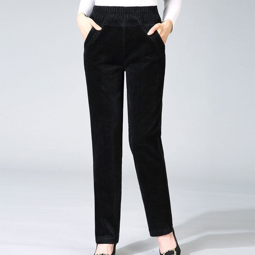 Celana panjang korduroi tebal berlapis bulu untuk wanita, celana panjang lurus kasual ukuran besar pinggang tinggi musim gugur musim dingin baru