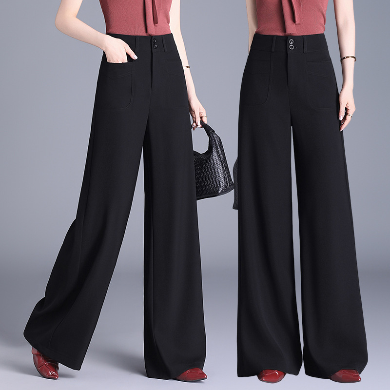 Celana Sedan Wanita Warna Hitam 2025 Celana Tabung Asap Ukuran Besar Lurus Musim Semi Musim Gugur Celana Barat Kasual Profesional Pinggang Tinggi Musim Panas