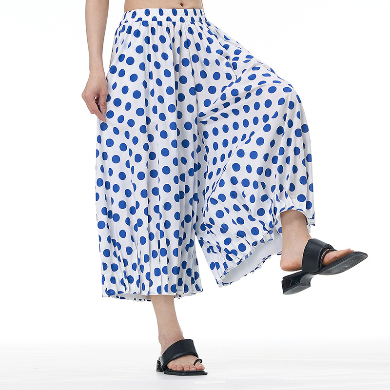 Celana Kasual Elegan Celana Rok Musim Panas 2025 Pakaian Wanita Ukuran Besar Celana Kaki Lebar Pola Asli Terlihat Kurus Longgar 1332-10
