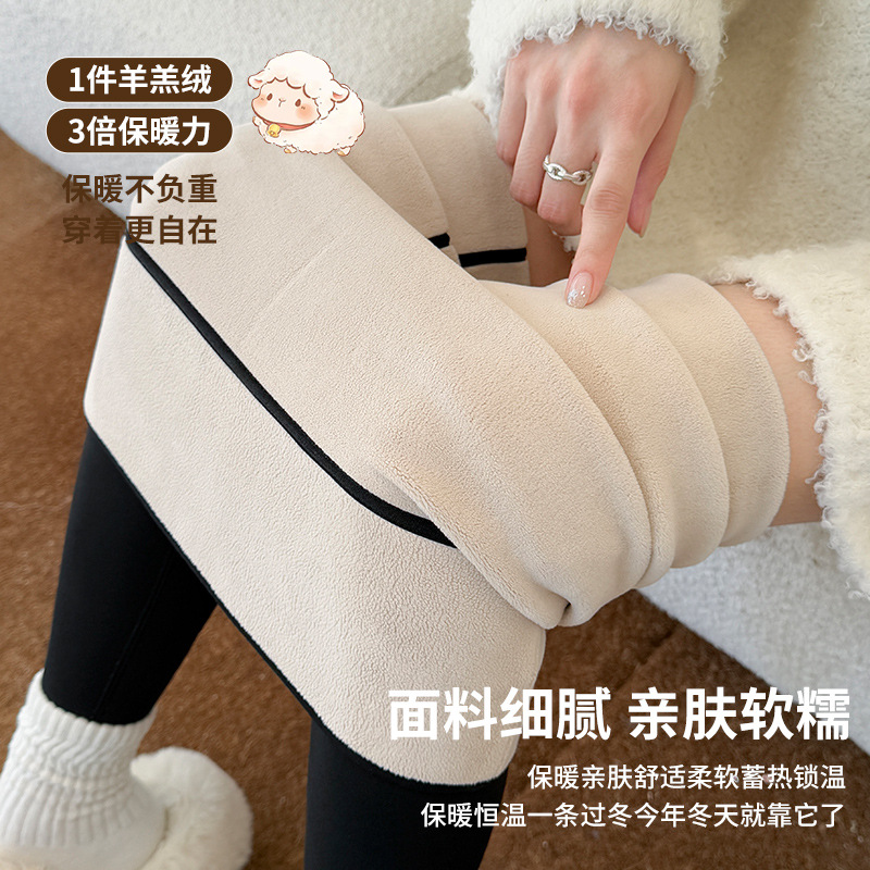 88028#秋冬新款羊羔绒椰椰裤可外穿高腰收腹加绒加厚保暖鲨鱼裤女