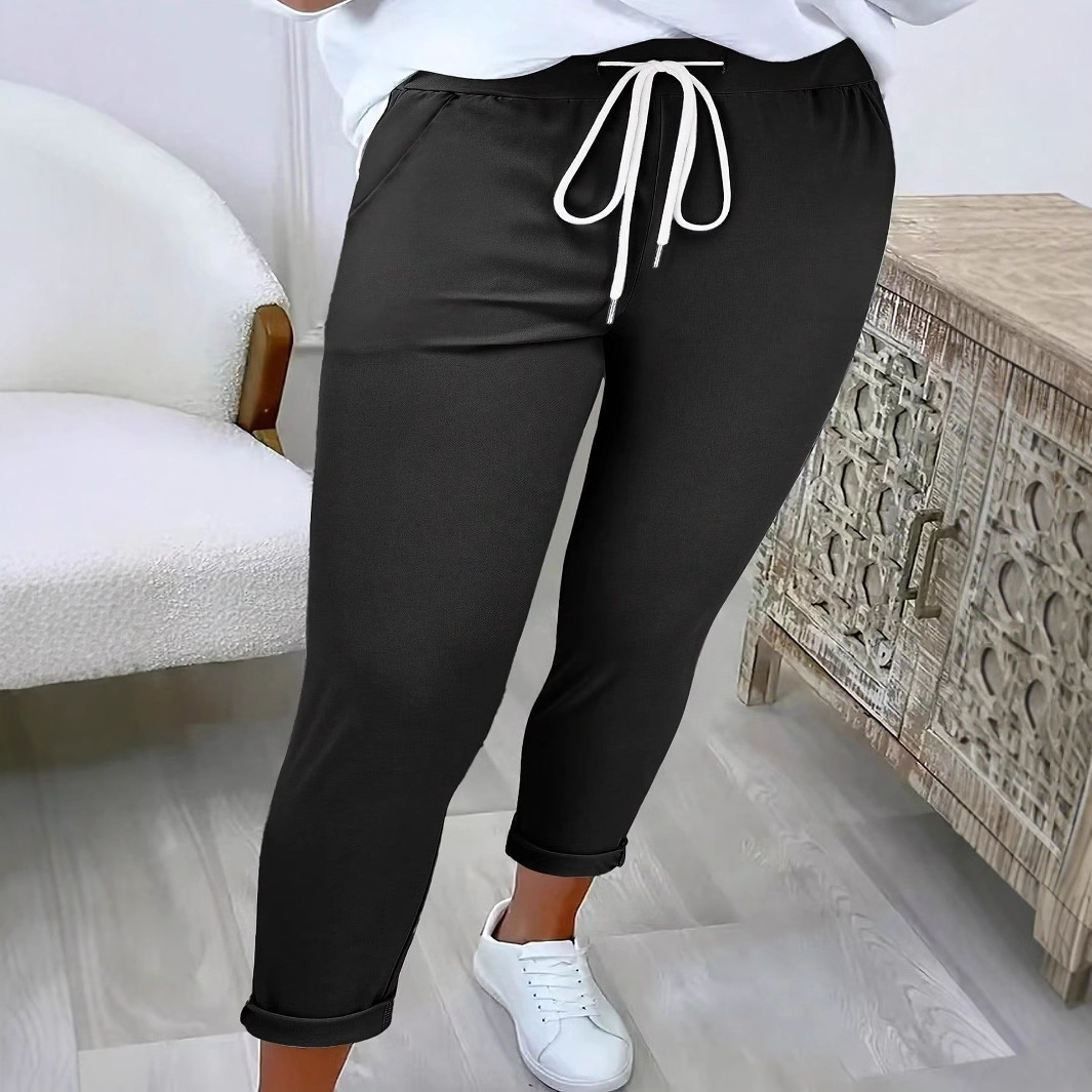 2025 Celana Panjang Kasual Elegan Perdagangan Luar Negeri Warna Solid Wanita