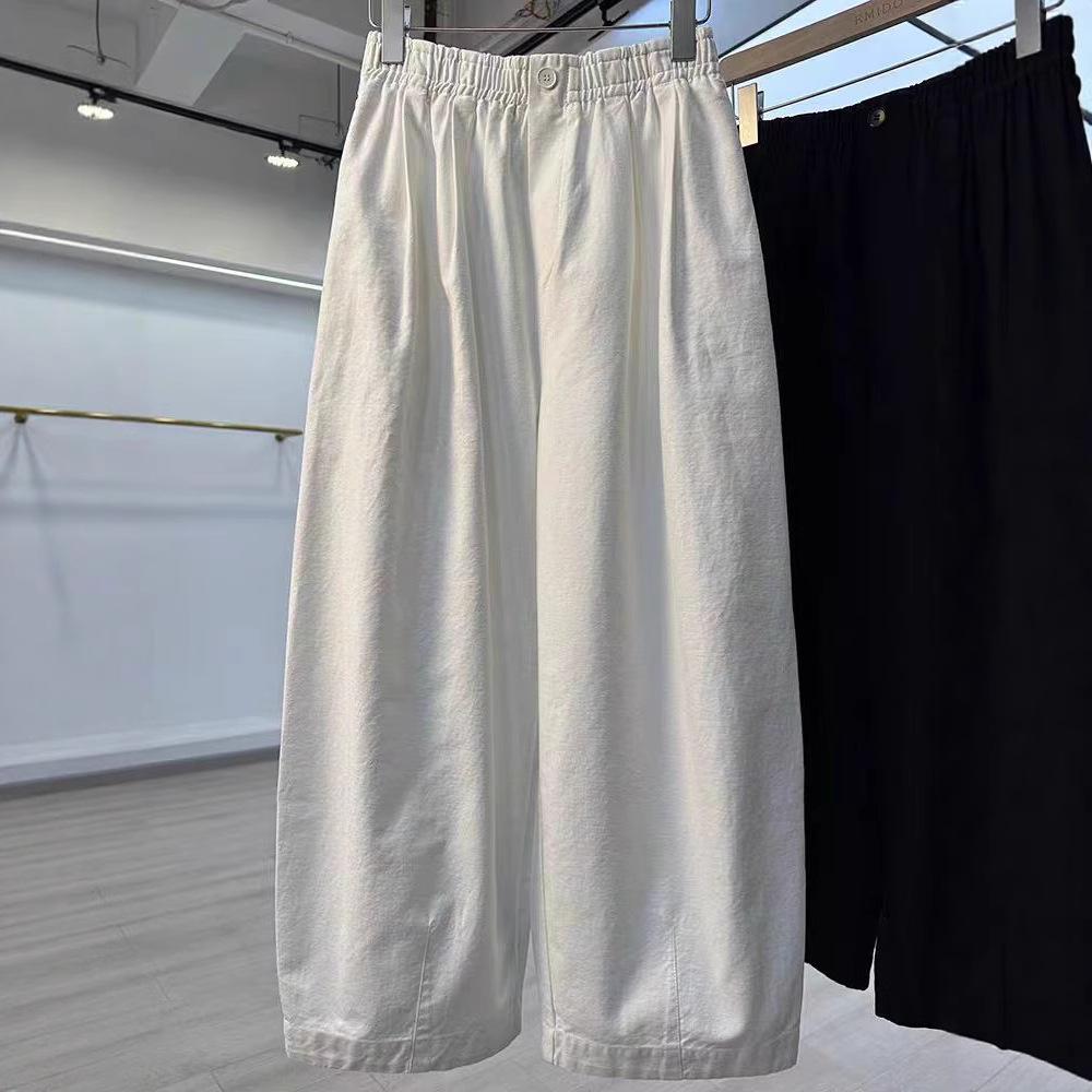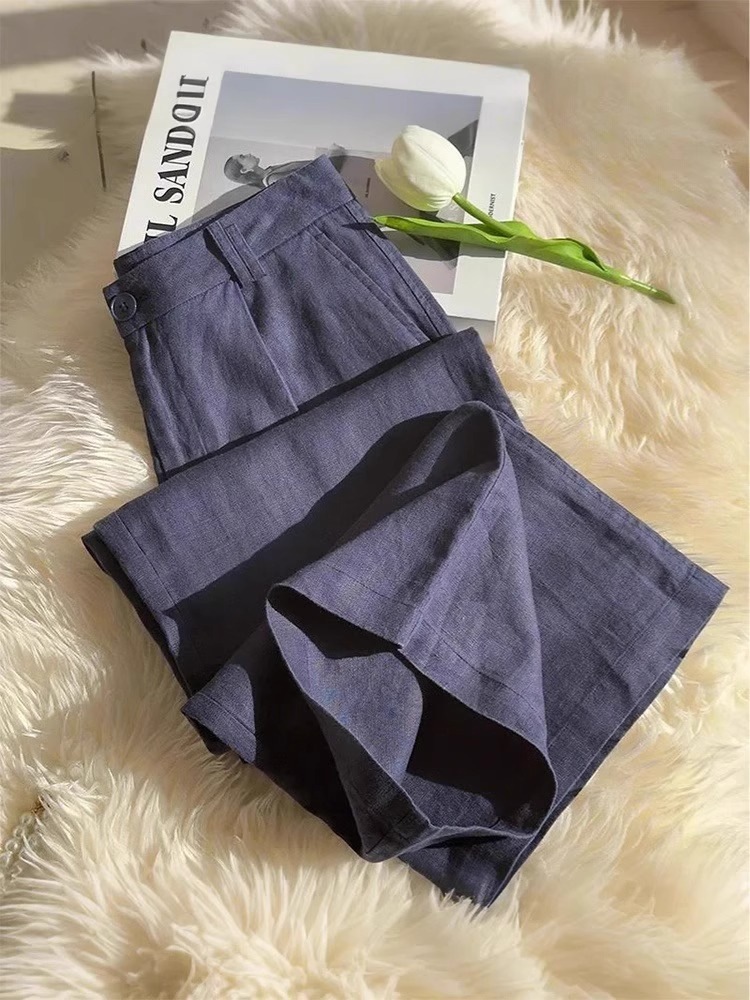 Celana kaki lebar katun dan linen wanita, dengan rasa jatuh pinggang tinggi ramping longgar artistik kasual ukuran plus Musim Semi 2022