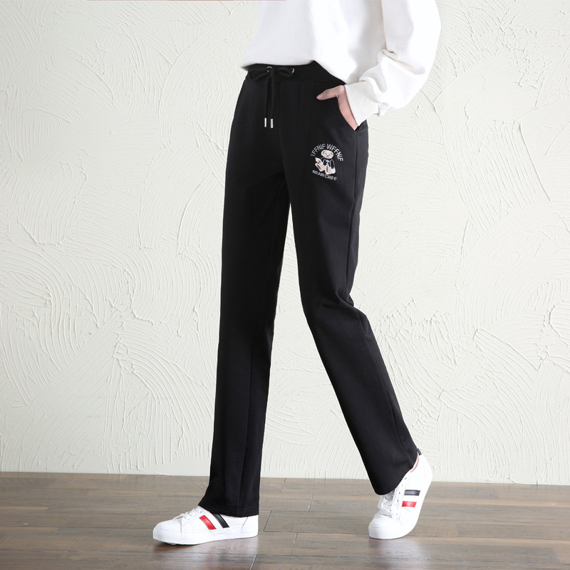 Celana kaki lebar wanita, bawahan pel olahraga murid kecil kasual longgar ukuran besar ramping lurus musim semi dan panas gaya Korea