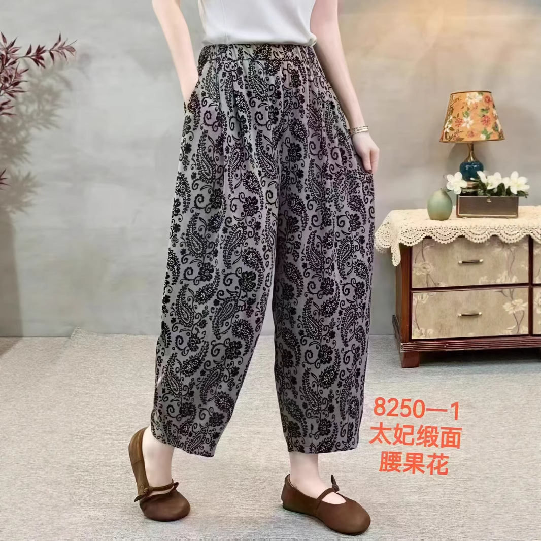 Celana Harem Bercorak Retro Celana Balon Sembilan Poin Kasual Longgar Ukuran Besar Permukaan Satin Model Baru 2025 Model Tipis Musim Panas Wanita
