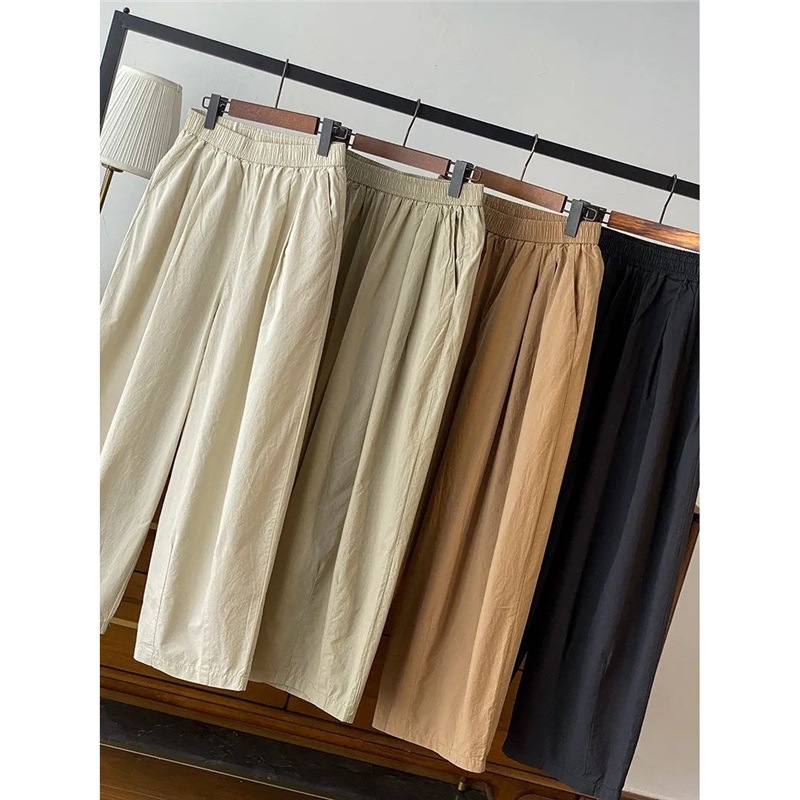 Pakaian Wanita Ukuran Besar Celana Kaki Lebar Model Baru Musim Semi dan Musim Panas Celana Kasual Gaya Bf Celana 9/10 Pinggang Elastis Longgar Celana Lipit Lentera