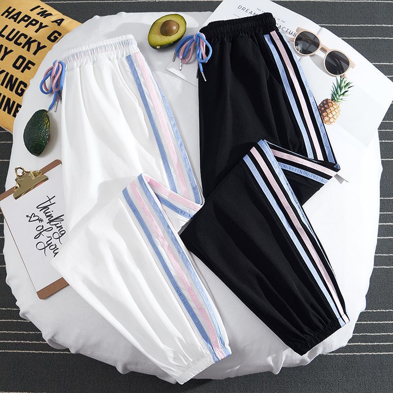 Celana Kaki Lebar Wanita Gemuk Ukuran Besar Celana Kasual Tabir Surya Model Tipis Musim Panas Celana Lurus Sutra Es Celana Olahraga Mengikat Kaki Cepat Kering