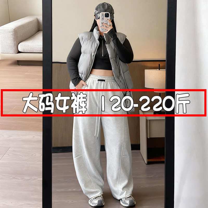 Celana olahraga wanita ukuran besar, celana pelangsing wanita, celana lurus longgar, celana olahraga kasual katun, celana generasi rambut tipis