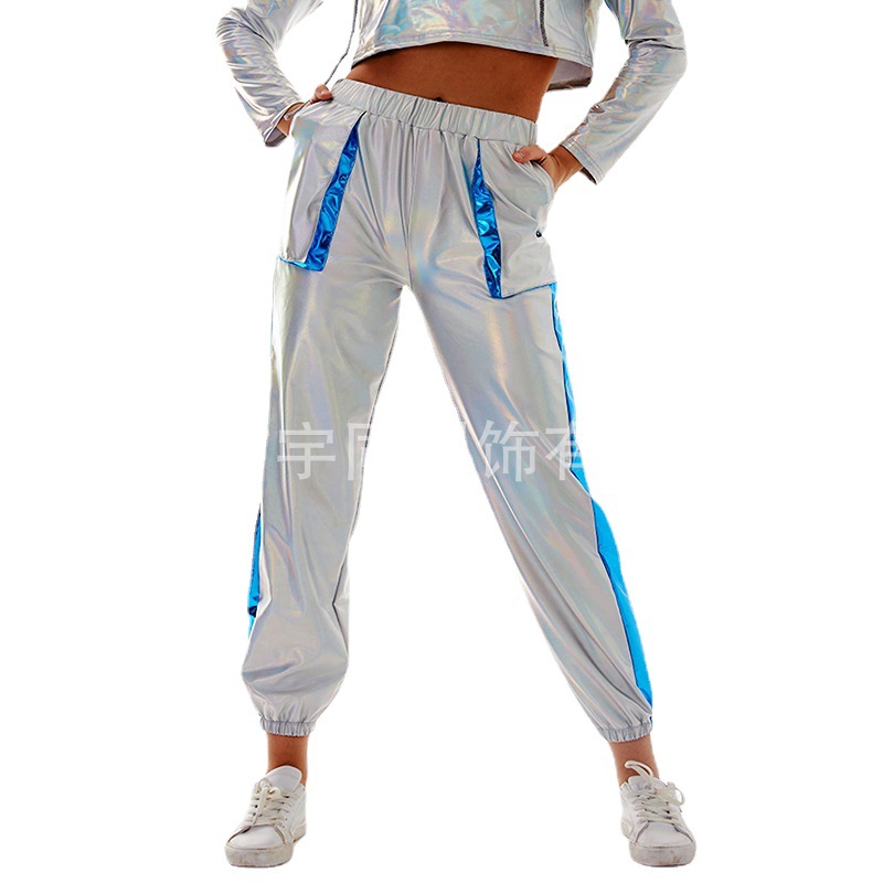 Celana kulit paten wanita, Bawahan kasual longgar warna baru saku tiga dimensi musim panas dan semi
