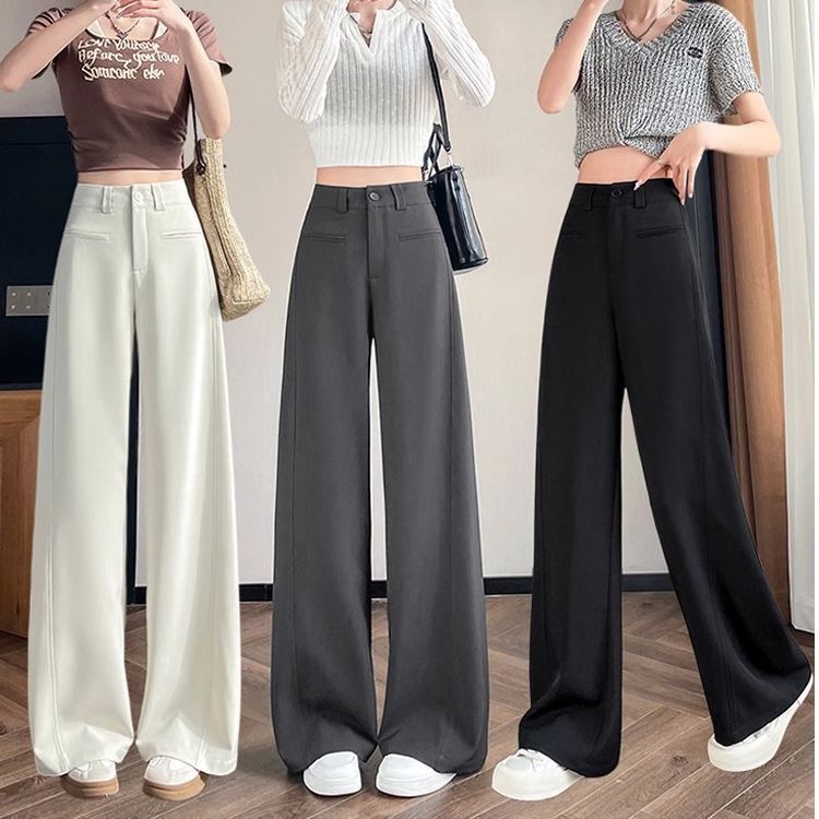 Celana Sedan Abu-abu Wanita Musim Panas 2025 Model Baru Celana Longgar Kasual Mudah Dipadu Padan Modis Celana Kaki Lebar Trendi