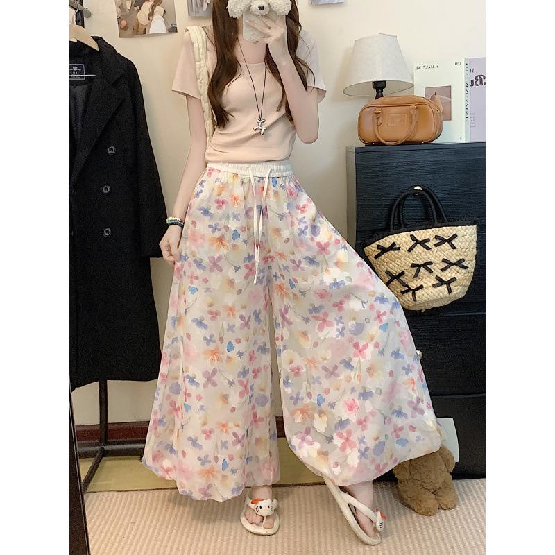 Celana Wanita Celana Panjang Kaki Lebar Kasual Wanita Musim Panas Rok Setengah Bodi Langsing Terlihat Langsing Pinggang Tinggi Musim Panas Wanita Rok Bracked Bunga Berkarakter Model Baru Musim Panas
