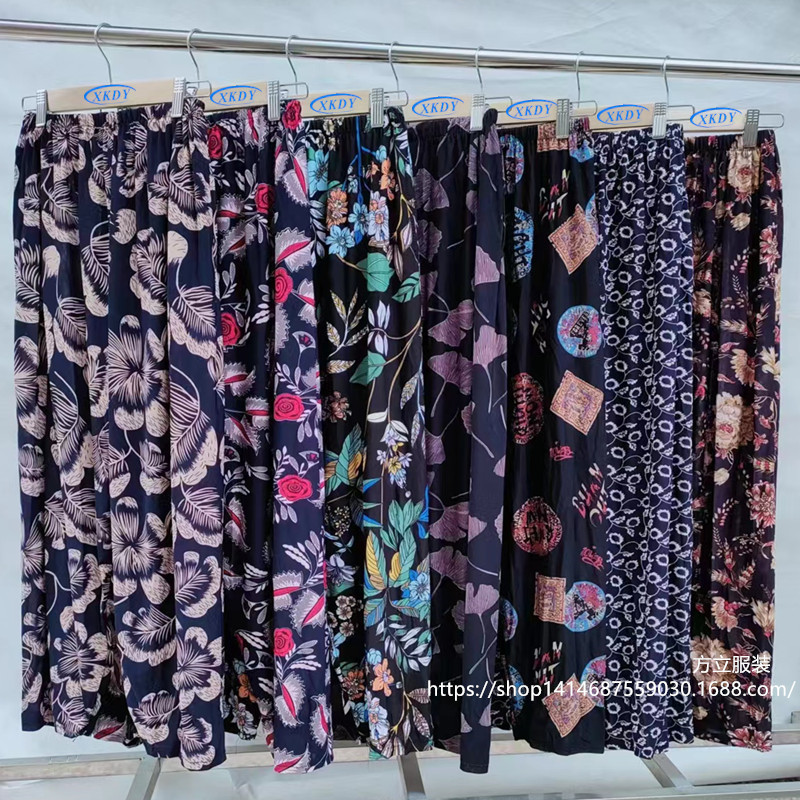 Celana wanita lurus kasual longgar ukuran besar celana bunga wanita setengah baya dan lansia celana wanita sutra es potongan tipis