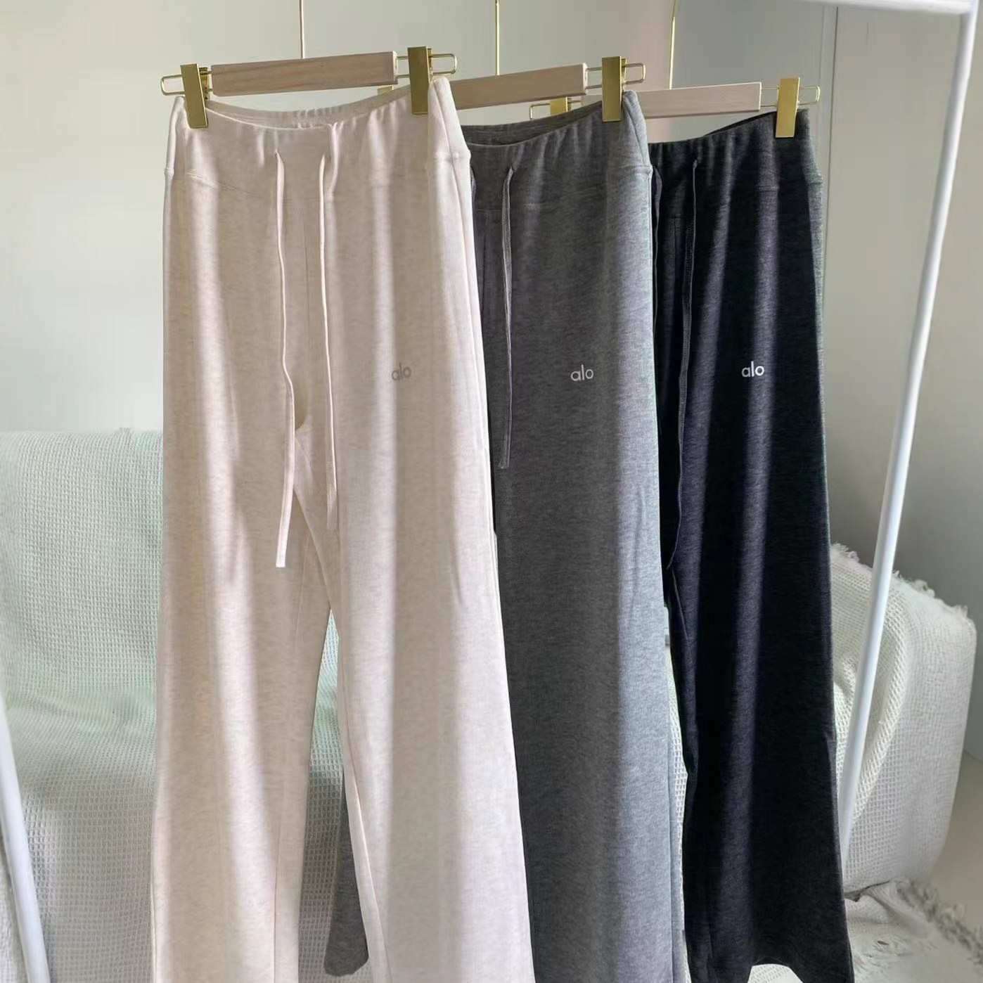 ALO Celana Rajutan Gaya Santai Santai Celana Kaki Lebar Celana Goyangan Lembut Lilin Longgar Longgar Abu-abu Celana Kasual Terlihat Langsing