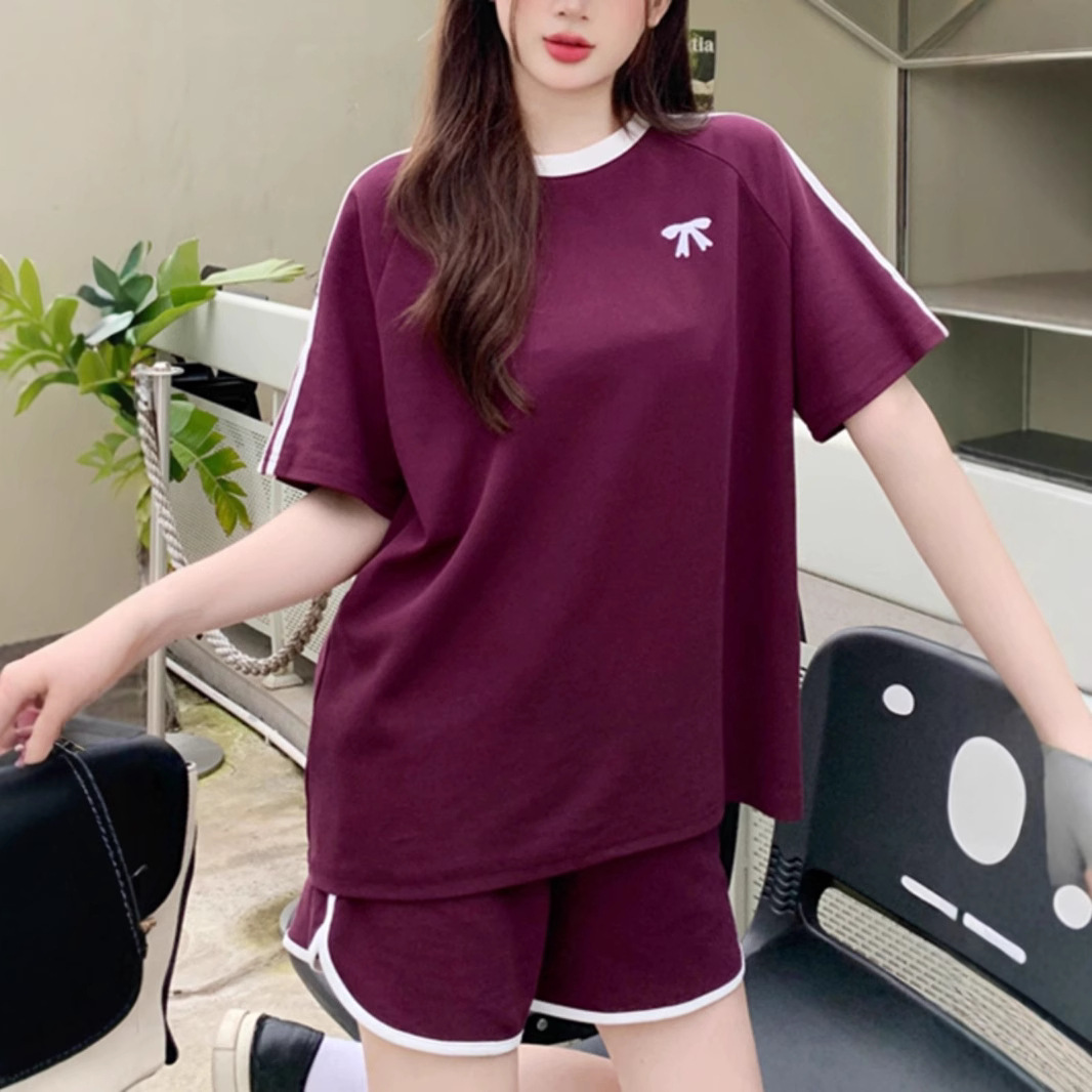 T-shirt Lengan Pendek Selebgram Gaya Korea Setelan Olahraga Celana Pendek Manis Gaya Amerika Longgar Pelajar Musim Panas Wanita Kasual Setelan Dua Potong