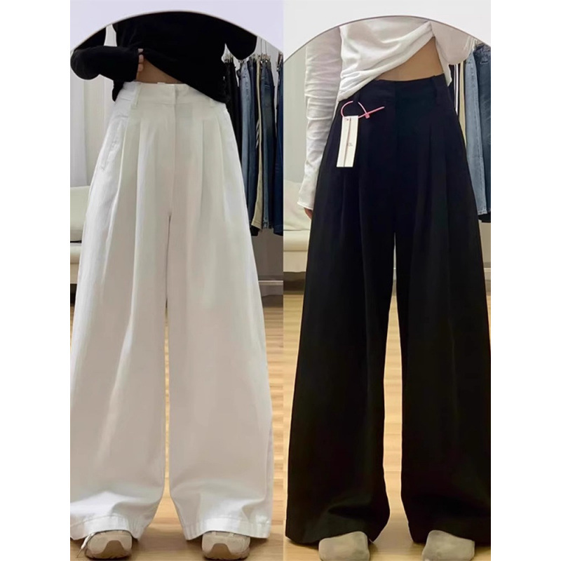 Celana Kaki Lebar Bertekstur Warna Putih Model Baru Celana Kasual Longgar Pinggang Tinggi Terlihat Ramping Wanita Gemuk Ukuran Besar