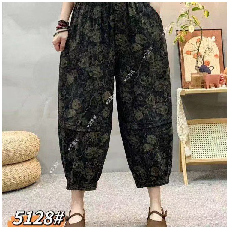 Celana kulot kaki lebar crop baru musim semi dan musim gugur celana kasual ukuran plus retro artistik wanita warna solid pinggang elastis 8873