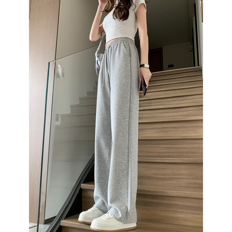 2024 musim panas baru pinggang tinggi lurus longgar tipis abu-abu olahraga lebar kaki bundel celana wanita kasual