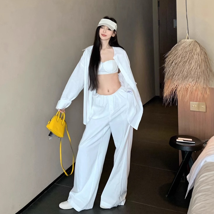 RHGD Foto Laris 2025 Kemeja Longgar Gaya Amerika Set Tali Sling Wanita Celana Panjang Santai