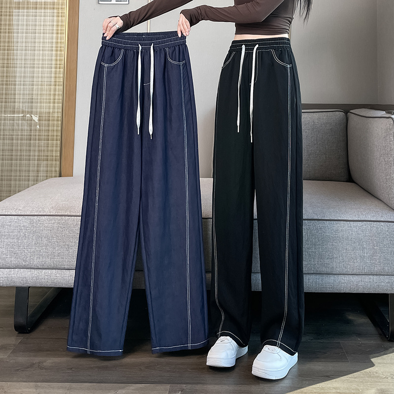 Perdagangan Luar Negeri Luar Negeri Amerika Celana Lurus Kasual Pakaian Wanita Musim Panas 2025 Longgar Kaki Lebar Celana Panjang Tempat Grosir