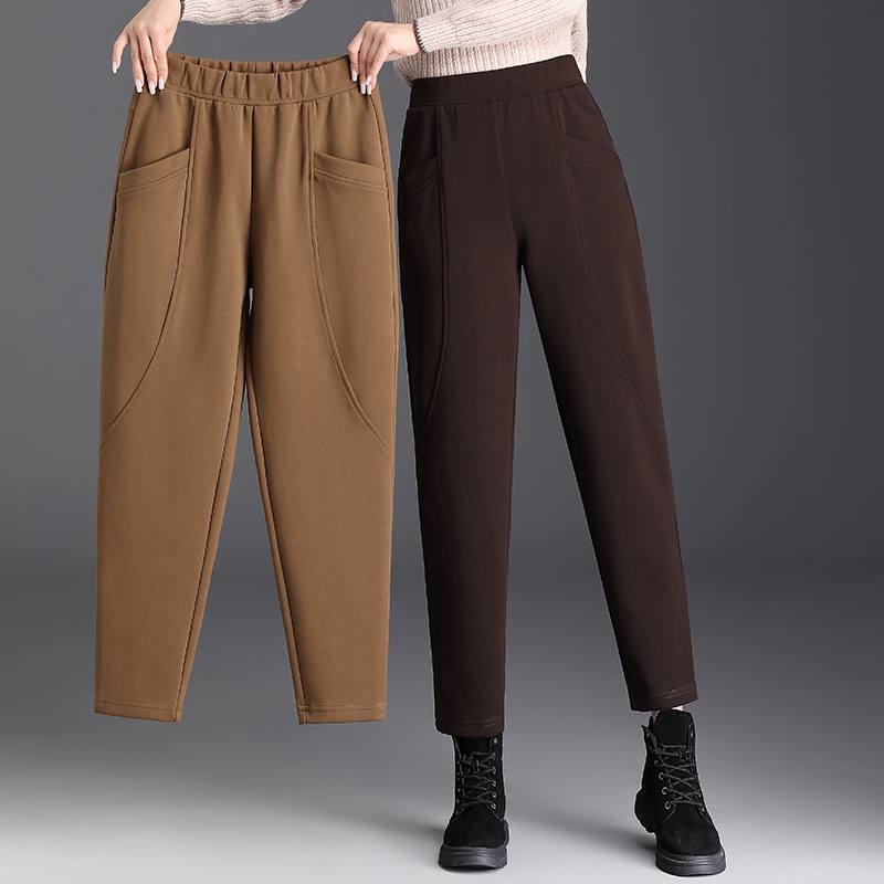 Celana Harem kasual wanita pinggang tinggi 2023 musim gugur dan musim dingin pelangsing baru ukuran besar longgar hitam dipotong celana bulu lurus