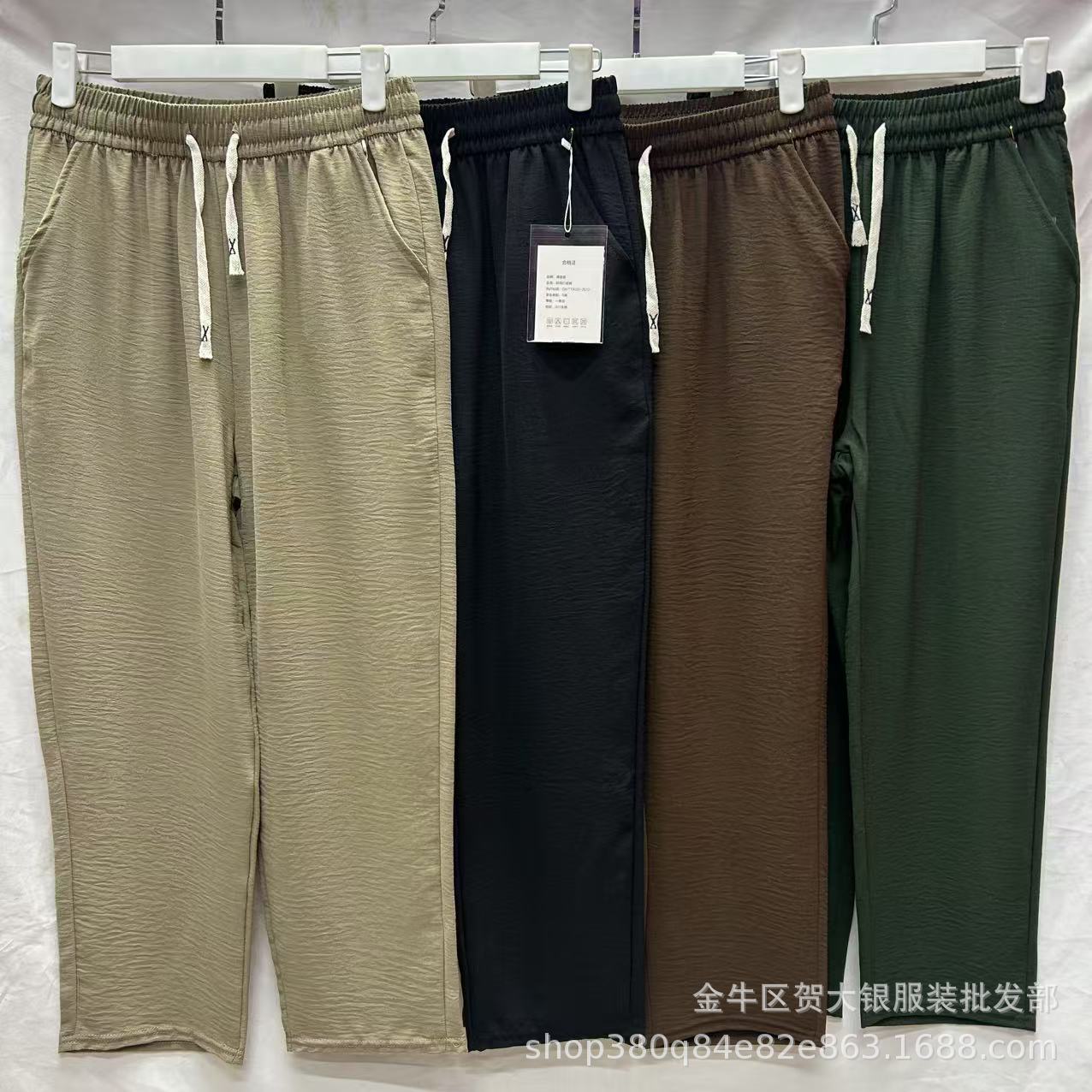 Celana Kasual Wanita Kerut Sutra Es 2025 Celana 9/10 Longgar Model Tipis Musim Panas Setengah Baya Celana Dingin Ringan Tipis untuk Ibu