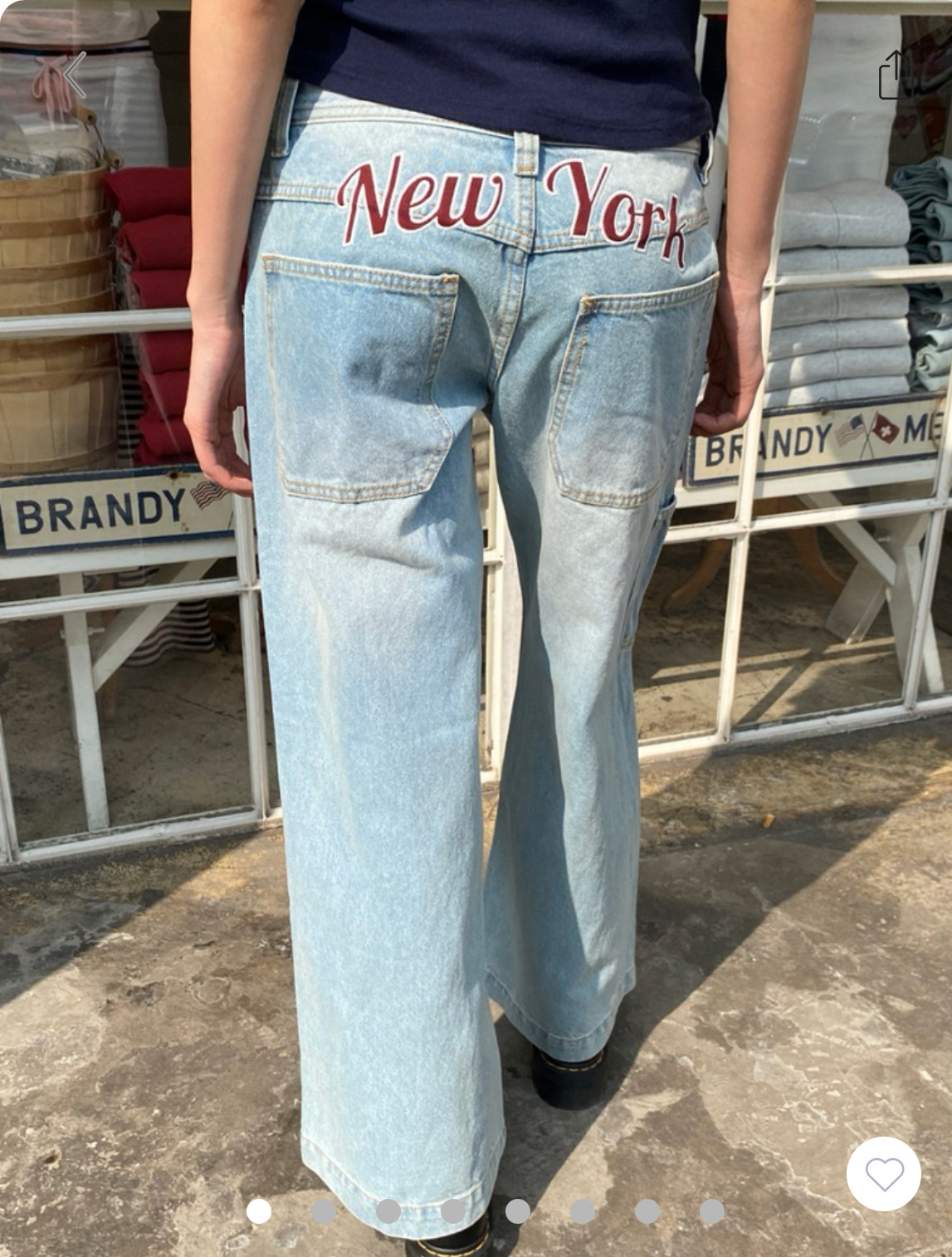 Celana Jeans Gaya BM Warna Biru Muda NEW YORK Celana Panjang Kaki Lebar Lurus Wanita Celana Longgar Gaya Babes Mudah Dipadu Padan