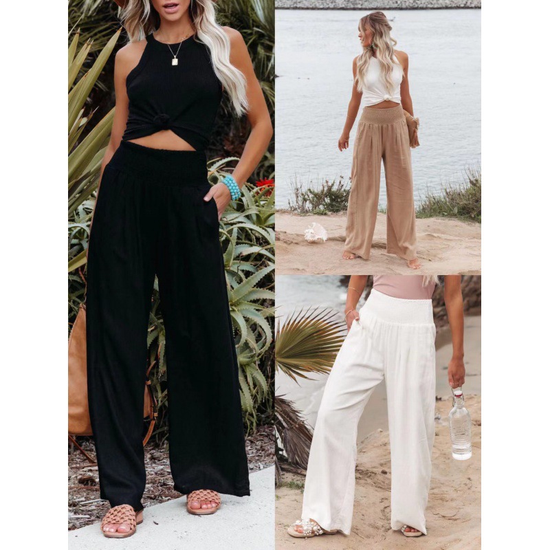 Celana linen murni model wide-leg untuk wanita, gaya baru musim panas, pinggang tinggi, ukuran besar, longgar, tipis, kasual, berbahan lembut, terasa mewah, potongan lurus, celana cropped.