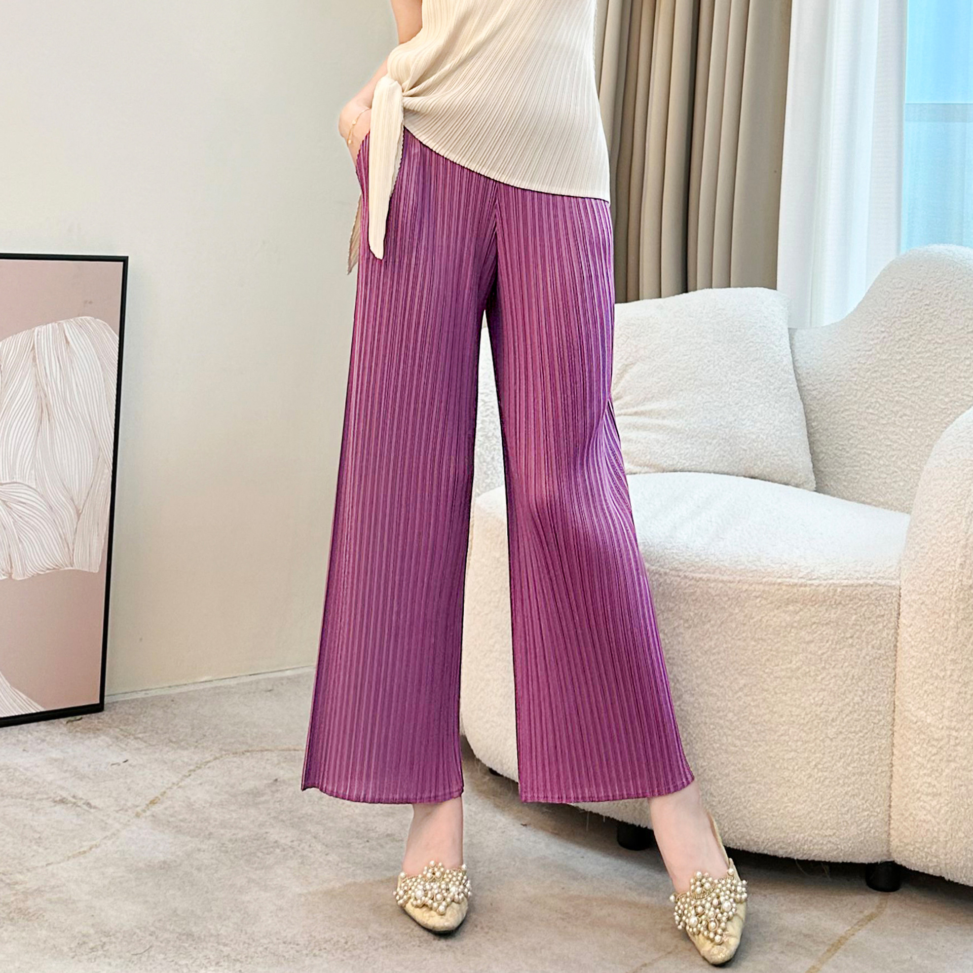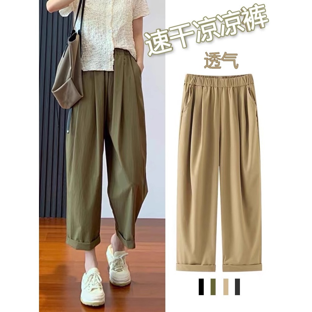 Celana Wanita Cepat Kering Sutra Es Ukuran Besar Celana Lurus 9/10 Model Tipis Musim Panas 2025 Celana Kasual Bernapas Terlihat Langsing Wanita Berukuran Besar A4382
