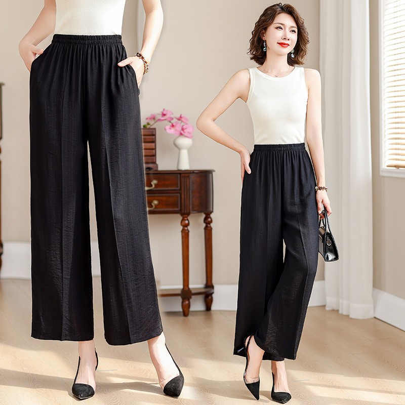 Celana bernapas ~ Celana Kulot Tipe A Musim Panas Ukuran Besar Longgar Model Tipis Kasual Celana 9/10 Wanita