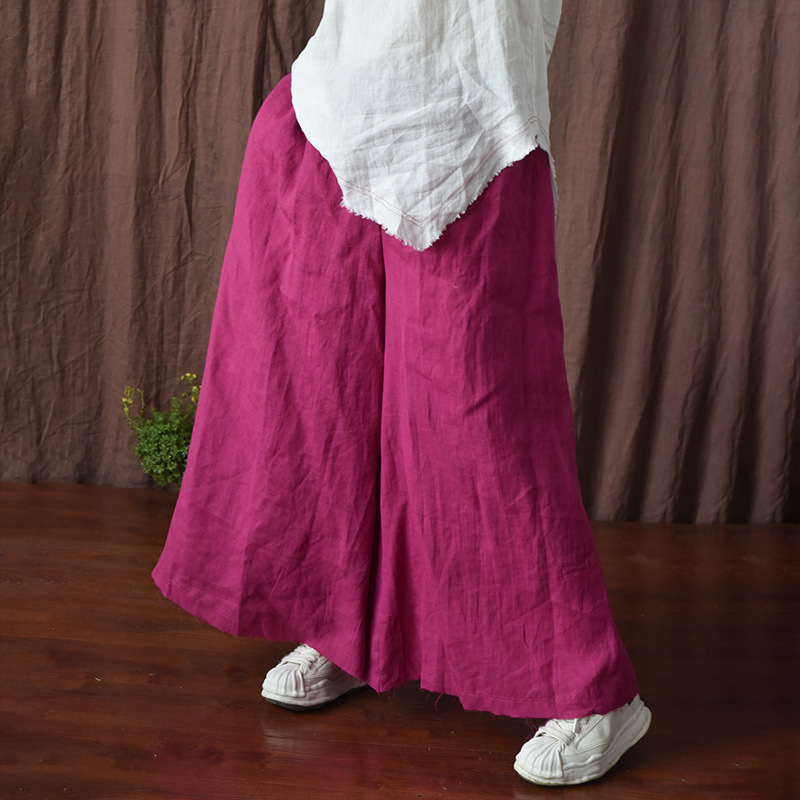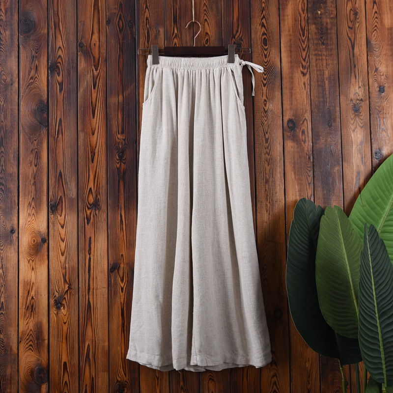 Penjualan Langsung Pabrik Celana Linen Ukuran Besar Sastra dan Seni Celana Linen Wanita Pinggang Elastis Linen Warna Polos Rok Celana Besar Gaya Terkenal