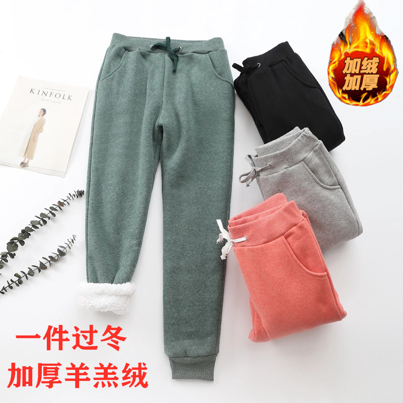 Grosir Musim Dingin Ukuran Besar Celana Tambah Beludru Ekstra Tebal Pakaian Wanita Model Baru 2025 Celana Harem Bertali Terlihat Kurus Longgar