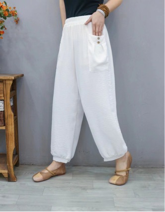 Selamat Datang pinus/rami asli sastra dan retro wanita ukuran plus kulot buatan rumah katun dan linen celana panjang kaki longgar wanita