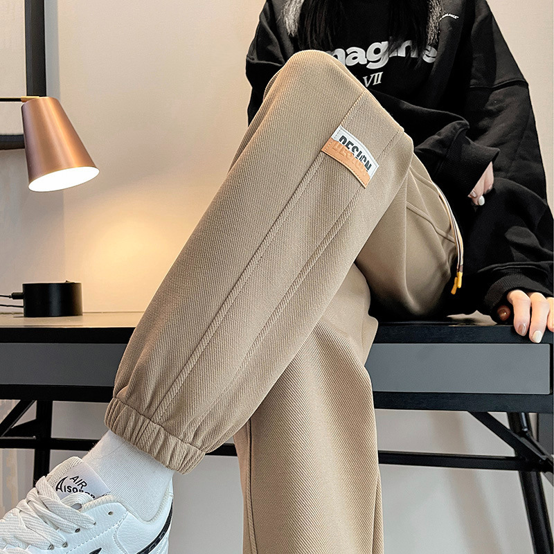 Celana olahraga khaki ukuran besar untuk wanita, gaya baru musim gugur dan musim dingin 2024, celana jogger harem kasual berlapis bulu untuk wanita berisi.