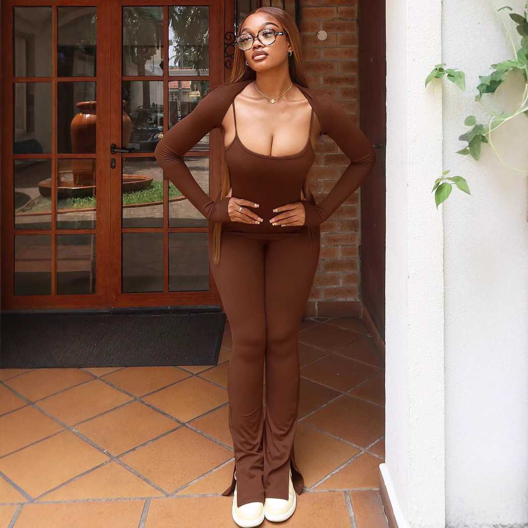 Pakaian Wanita Eropa dan Amerika Setelan Warna Solid Modis Model Baru 2024