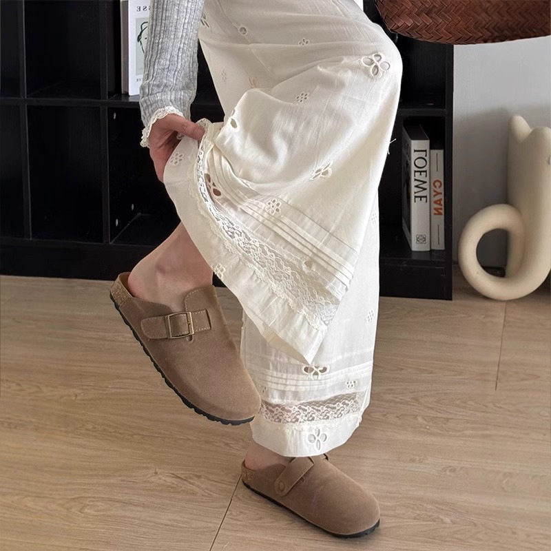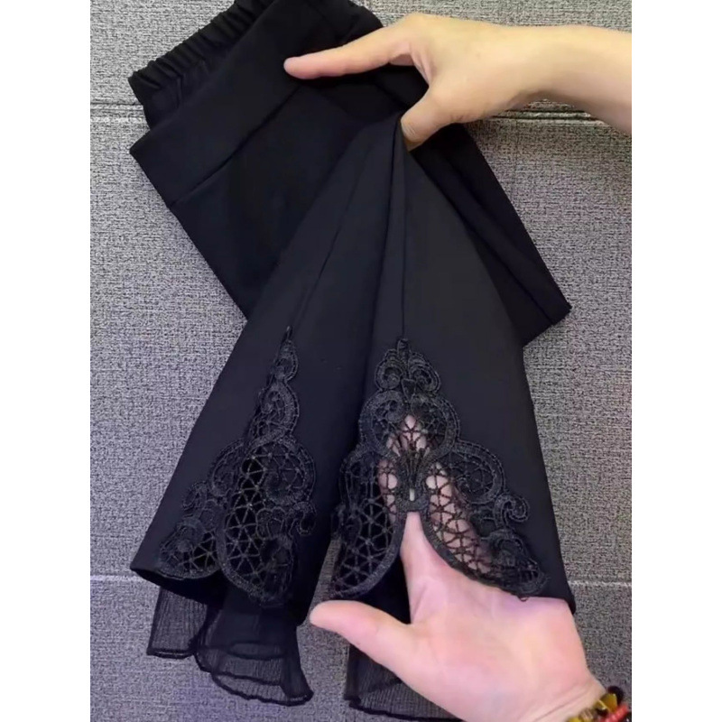 Celana Kaki Lebar Kombinasi Renda Berongga Gaya Korea Celana Kasual Kaki Lebar Gaya Desain Longgar Pinggang Tinggi Model Baru Musim Panas Ukuran Besar Wanita