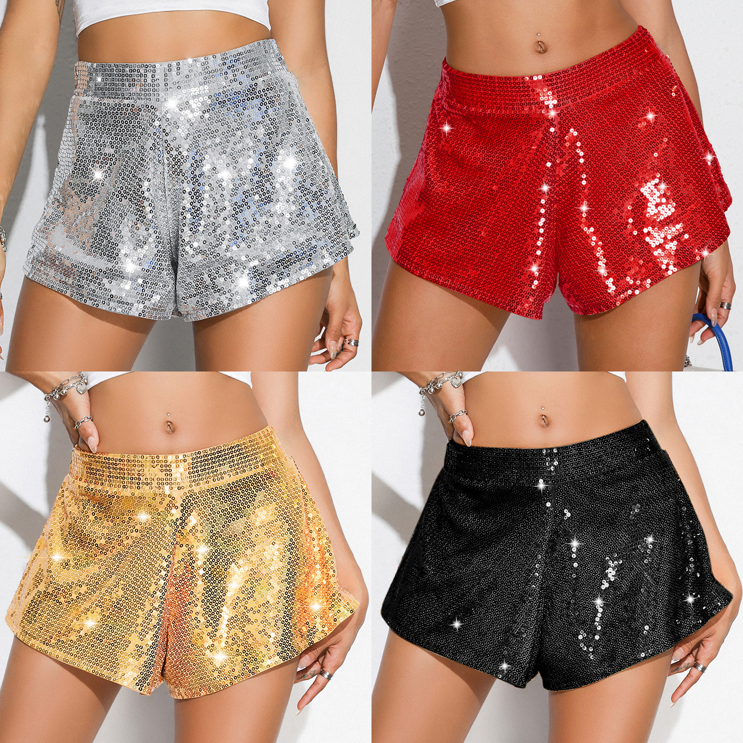 801 # Celana Pendek Kasual Pinggang Tinggi Gaya Eropa Amerika Model Baru Celana Panas Wanita Manik-manik Payet Elastis Tinggi Pakaian Pertunjukan Bar Tambah Besar