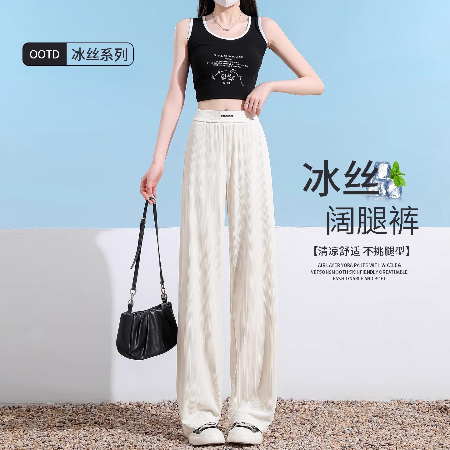 Celana Lebar Kaki Sutra Es Wanita Ukuran Besar 300Kg Celana Kasual Lurus Warna Putih Versi Sempit Anti Tergelut Matahari Model Tipis Musim Panas Wanita