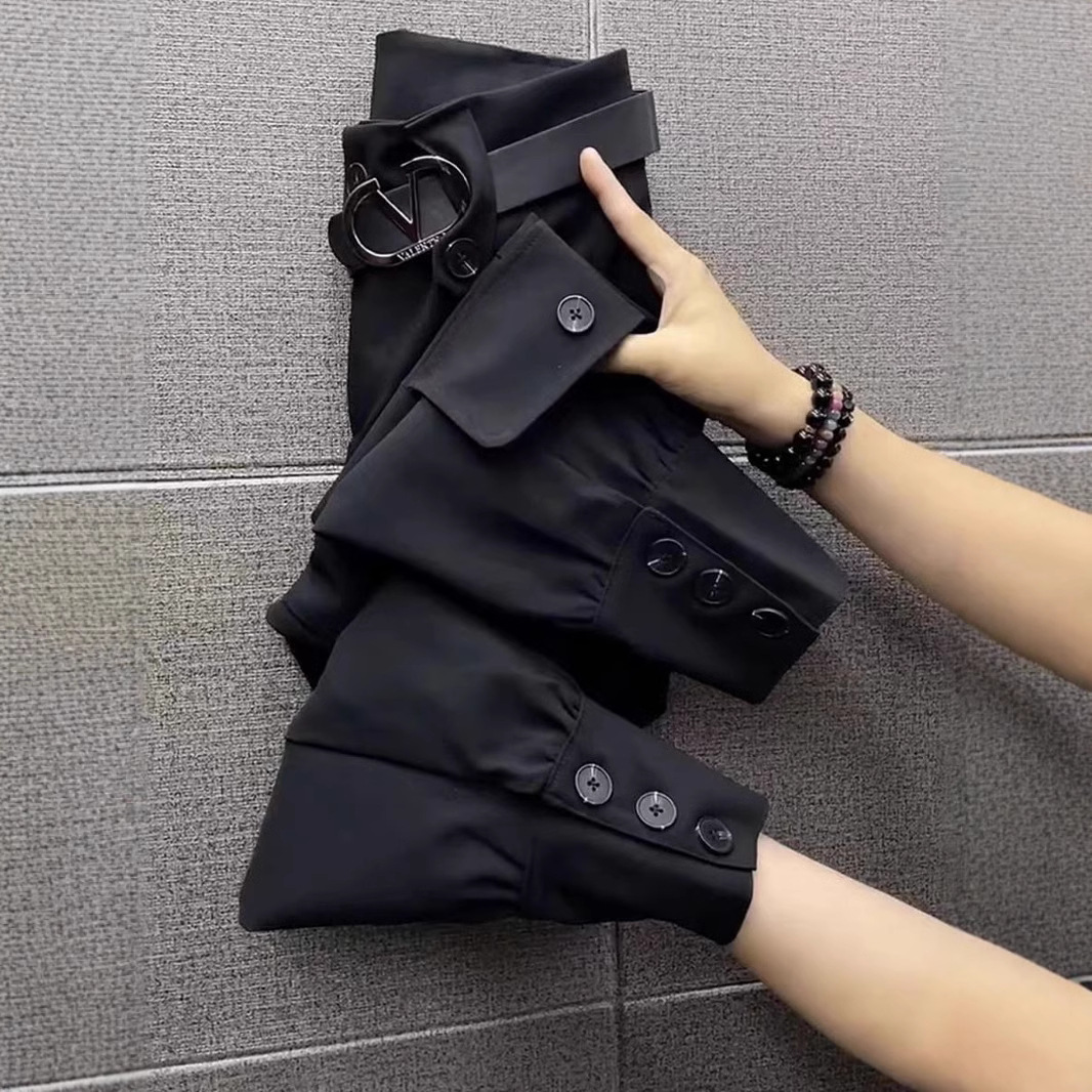 Celana setelan crop ramping untuk wanita, celana pelangsing ukuran plus kecil musim semi dan musim panas baru