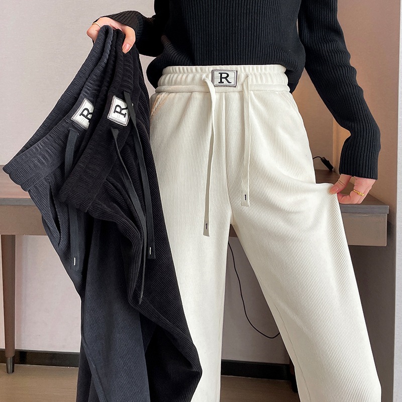Celana kasual wanita, celana kasual wanita ukuran besar musim gugur dan musim dingin 2024, celana harem olahraga pelajar gaya Korea, celana tebal berlapis bulu