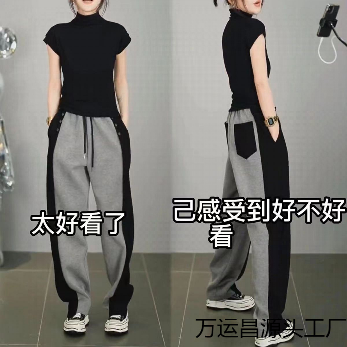 Celana Kaki Lebar Ukuran Besar Model Baru Celana Kasual Longgar Pinggang Tinggi Tubuh Kecil Bentuk Pir Terlihat Langsing Model Tipis Musim Panas Wanita Berukuran Besar