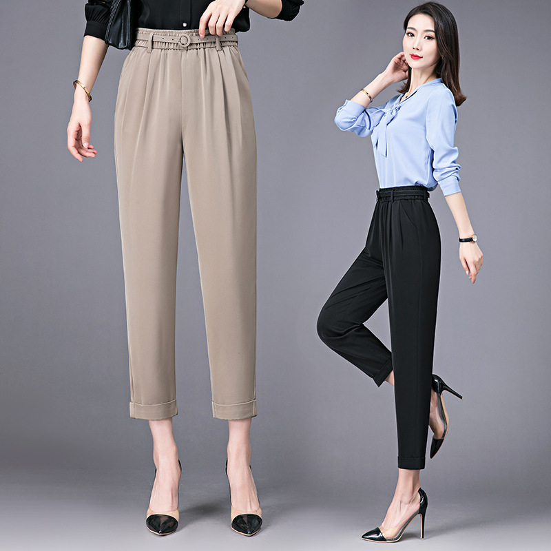 Celana wanita kasual, celana wanita kasual musim panas pinggang tinggi, celana pelangsing cepat kering ukuran besar, celana kaki lebar keren gaya Korea, celana Yamamoto serbaguna