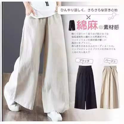 2025 Celana Kaki Lebar Ukuran Besar Longgar Katun Linen Musim Semi dan Musim Panas Korea Celana Pel Pinggang Tinggi Celana Panjang Lurus Celana Kasual Wanita Linen