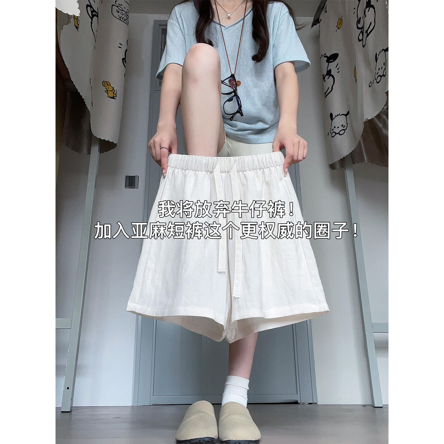 Celana Pendek Katun Linen Longgar Model Baru Musim Panas Celana Pendek Kasual Olahraga Siswa Ukuran Besar Linen Linen Longgar Celana Kaki Lebar Wanita