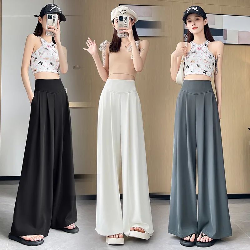 Celana Sedan Model Baru Musim Panas 2025 Celana Kaki Lebar Pinggang Tinggi Wanita Celana Panjang Pel Besar Longgar Kasual Lurus