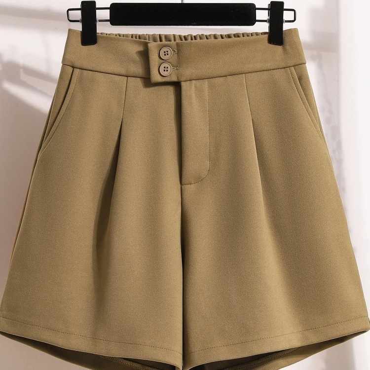 Celana pendek wol kaki lebar wanita, pakaian luar longgar ukuran besar musim gugur dan musim dingin, celana kasual elegan penutup daging a-line pinggang tinggi pelangsing anak perempuan