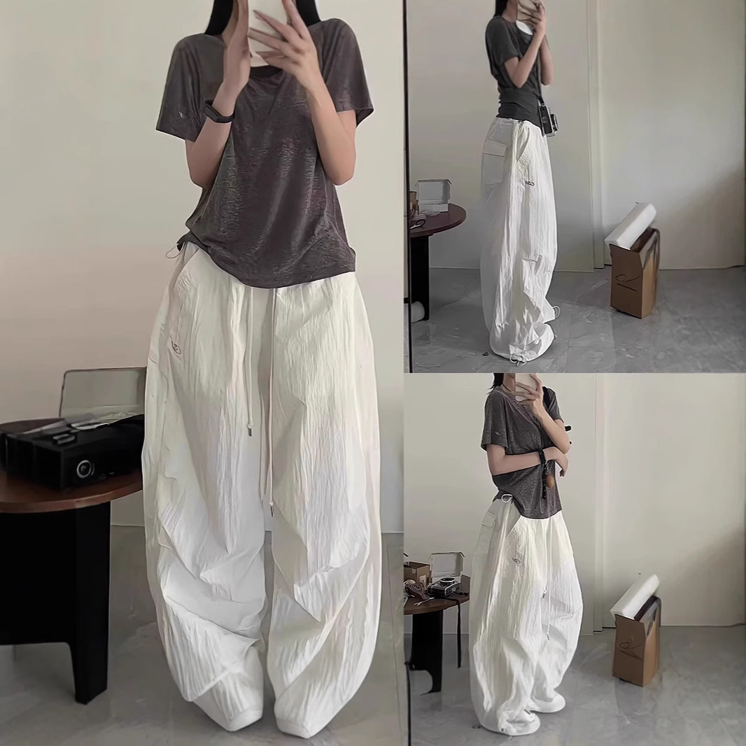 Celana Kaki Lebar Model Tipis Musim Semi dan Musim Panas Celana Lurus Pinggang Tinggi Model Baru Terlihat Langsing Celana Olahraga Kasual Longgar Abu-abu