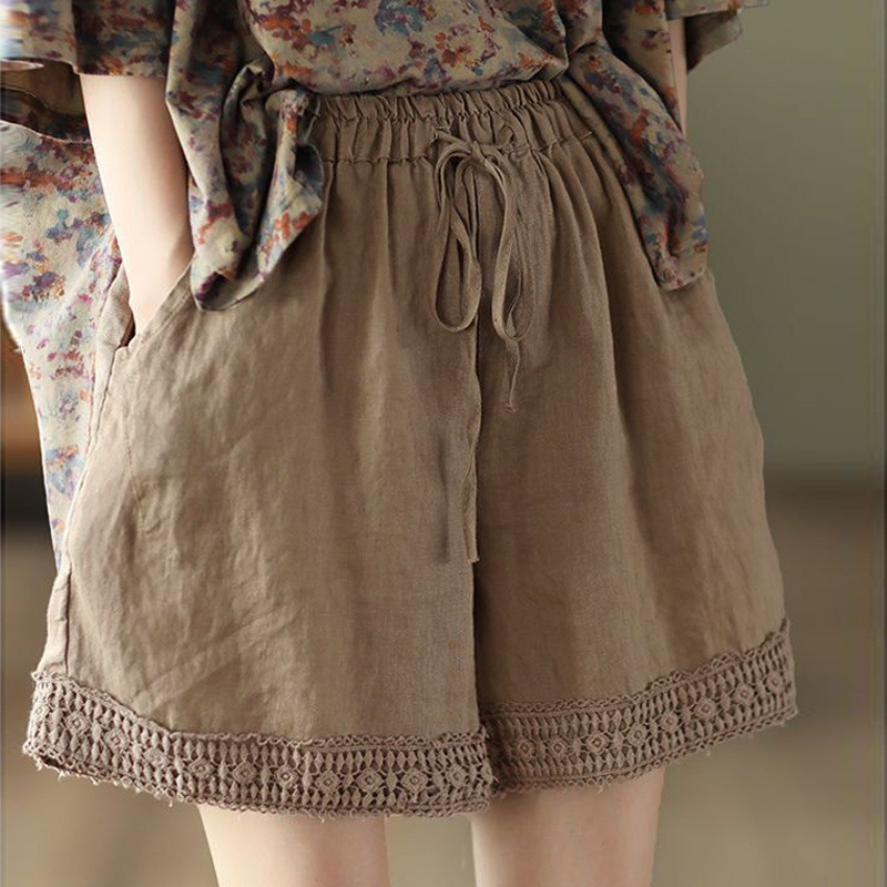 Celana Pendek Katun Linen Wanita Celana Katun Linen Wanita Model Tipis Musim Panas Celana Panjang Kaki Lebar Linen Kasual Ukuran Besar Wanita