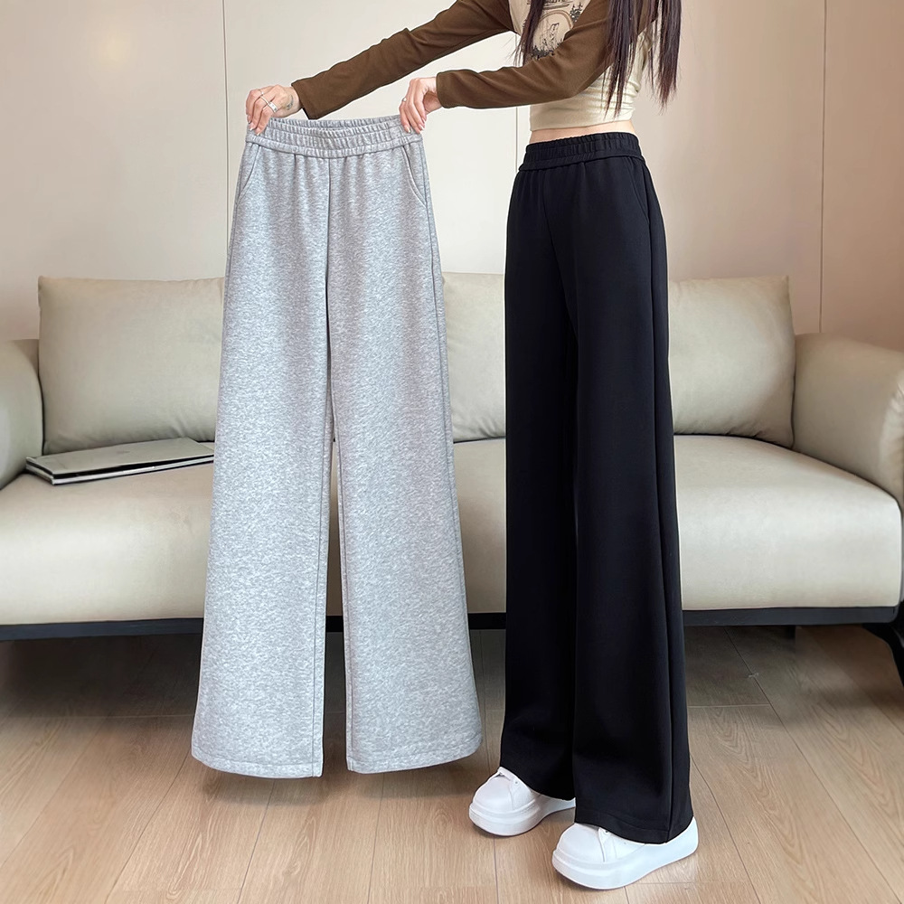 Celana olahraga bulu domba longgar ukuran besar celana kaki lebar musim gugur dan musim dingin wanita celana olahraga kasual hangat bulu domba kapas Eropa gadis gemuk pelangsing pinggang tinggi